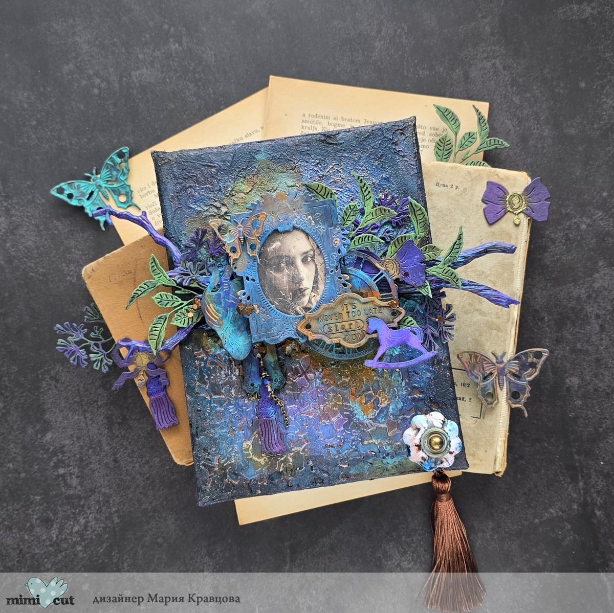 И этим холстом я завершаю свой творческий год с чудесными ножами производителя. Я счастлива, что мое желание сбылось. В качестве финальной работы мне захотелось создать миксмедийный холст, в котором всё как я люблю: фактуры (в том числе с помощью ножа "И снова все в ажуре"), вырубка чудесными ножами, краски и сочные акценты. Также с создании холста участвовали ножи для вырубки: "Картинная галерея", "Любящее сердце", "Время любить", "Ключи от всех дверей", "Шумят сады зеленым телеграфом", "Театральная гостиная", "Друзья детства".