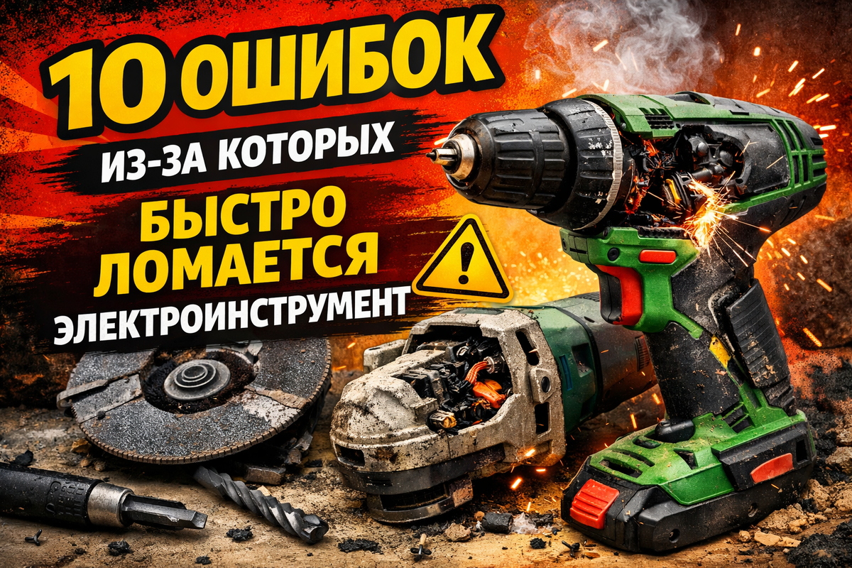 Электроинструмент сегодня есть почти в каждом доме 🏠. Дрели, болгарки, шуруповерты, перфораторы покупают для ремонта, дачи и работы. Но часто инструмент выходит из строя намного раньше срока ⏱️. Причина почти всегда не в браке, а в ошибках эксплуатации. Разберем 10 самых распространенных ошибок, которые буквально убивают электроинструмент ❌. Многие уверены, что если инструмент работает, значит можно пилить или сверлить без остановки. Это одна из самых частых причин поломок. Двигатель перегревается, лак на обмотках теряет свойства, подшипники работают в экстремальном режиме. Особенно опасно это для бюджетных моделей 💸. Как правильно