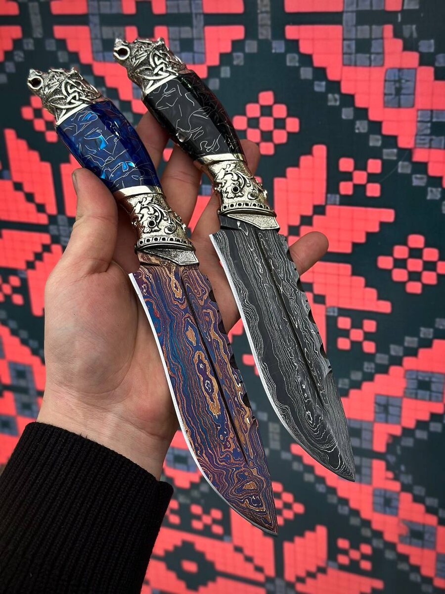 художественной фактуры и надёжной технологии. Клинок: дамасская сталь с добавлением никеля и художественным оксидированием глубоко контрастный, с живым рельефом рисунка и повышенной коррозионной стойкостью. Рукоять: декоративная стружка залитая в прозрачный акрил каждая рукоять уникальна, приятна на ощупь и устойчива износу. Гарды: мельхиор с детальной чеканкой придают изделию благородный вид и дополнительную прочность. Ножны: натуральная кожа классика комфорта и защиты лезвия. ⚪️цена 16.500₽ ЗАКАЗАТЬ В ВАТСАПЕ ЗАКАЗАТЬ В ТЕЛЕГРАММЕ ЭКСКЛЮЗИВНЫЕ НОЖИ 👑 ОТПРАВКА И ОТЗЫВЫ ⚪️+79280609590
