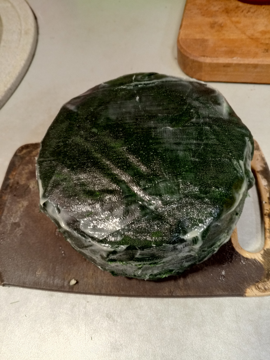 Вчера я после работы всё-таки занялась сыром. Покрыла его бандажом.