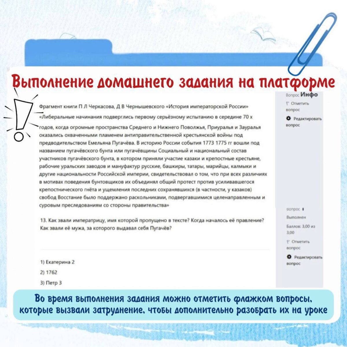 … Одна из главных особенностей моего курса - проверка домашних заданий 👍 Работа с домашним заданием в мини-группах проходит так: ✔️ Во время выполнения задания можно отметить флажком вопросы, которые вызвали затруднение. ✔️Сразу после отправки ответа можно прочитать пример правильного ответа. ✔️Вы видите оценку своего ответа и максимальный балл. А в комментарии будет информация по решаемому заданию. ❗️Письменное домашнее задание мы разбираем индивидуально с каждым учащимся! ⚠️⚠️На занятиях в мини-группе пропуски и невыполненные домашние задания - исключение. Я отслеживаю прогресс каждого ученика. Дедлайны дисциплинируют! И да, они есть на моем обучающем курсе! ❓А проверяют ли домашки ваши репетиторы?