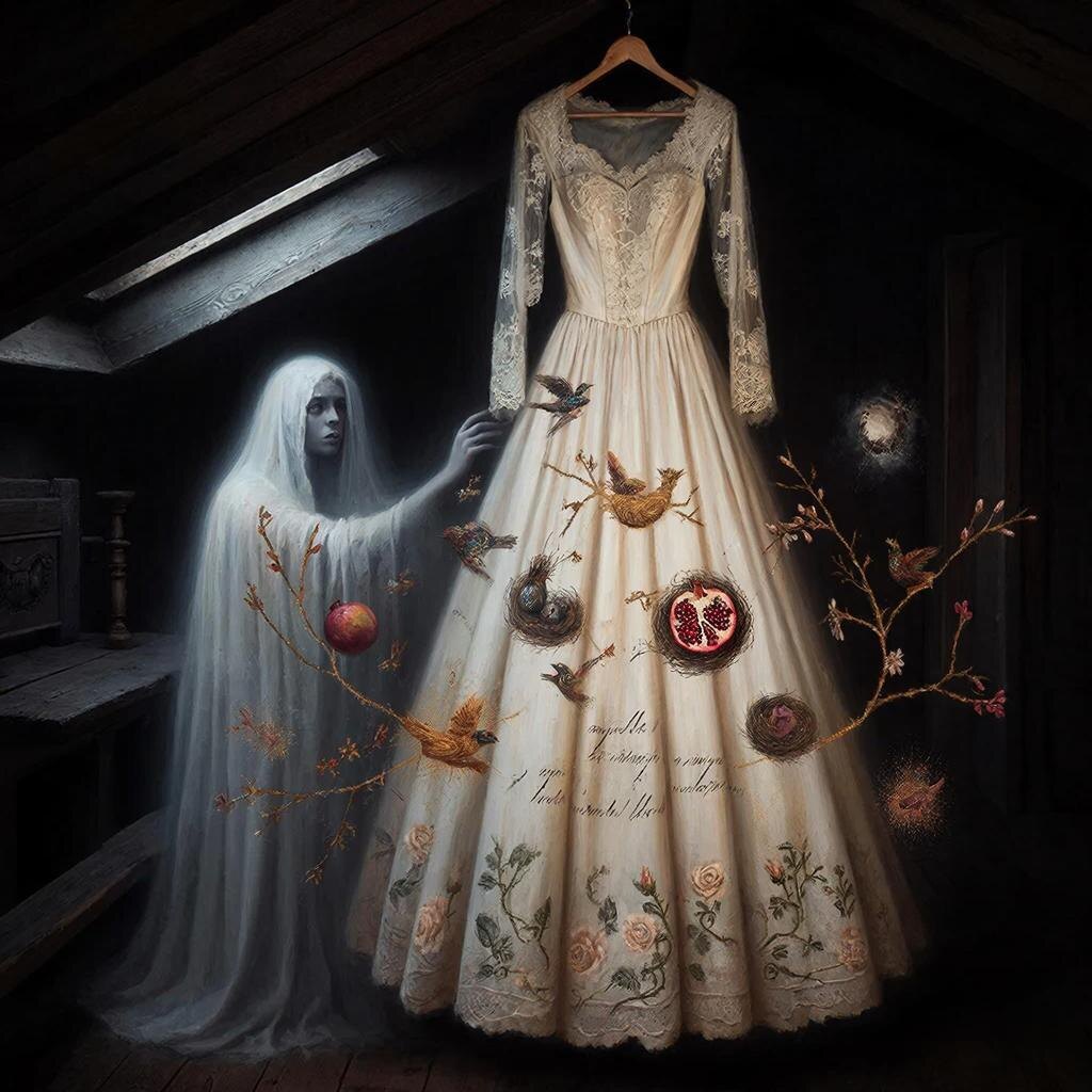 Это было самопроклятие. Его наложила на себя первая владелица, Вера. Красавица, вышедшая замуж по расчету за богатого старика. Легенда гласила, что она любила другого — молодого художника, но семья её не благословила. Она пожелала сохранить свою красоту и «любовь, что не проходит» (возможно, к тому самому художнику) ценой материнства. И вплела эту страшную цену в своё свадебное платье. Но проклятие, будучи личным, оказалось сильнее. Оно стало родовым. Оно прилипало к каждой невесте, надевшей это платье, отнимая у неё возможность дарить жизнь.