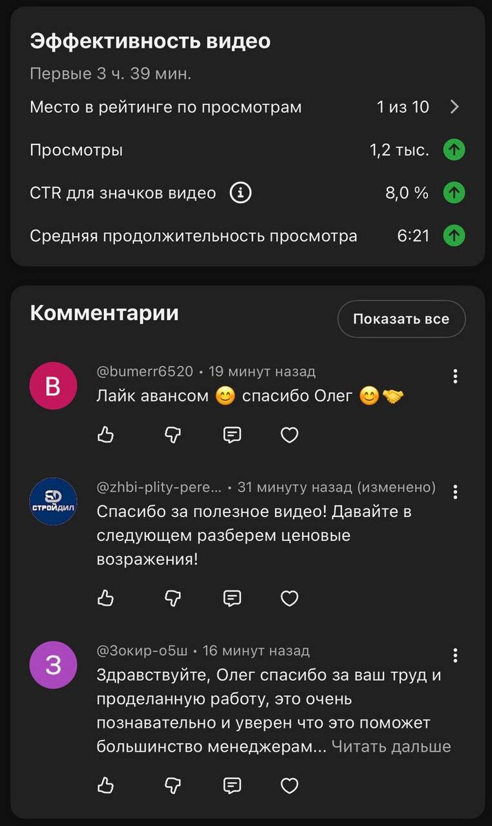 🏆 Видео только опубликовал, а вы уже: — поддержали и вывели его в ТОП, — не просто посмотрели, но уже и ИИ-агента опробовали (не зря я его обучал), — «хейтерские выстрелы» парировали. Всем спасибо и отличного вечера! Продолжаю работать над новыми выпусками.