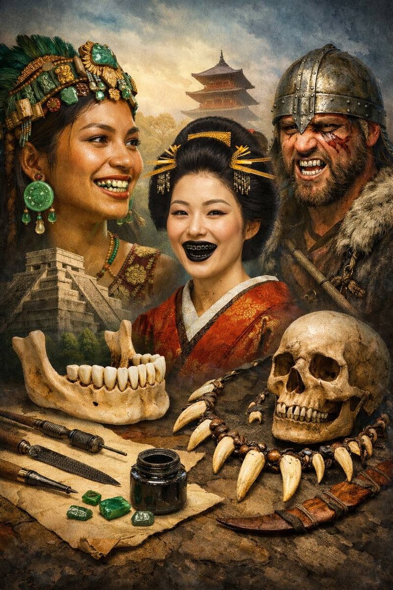 Для современного стоматолога зубы — прежде всего орган для жевания и речи, который нужно сохранить здоровым. Но на протяжении веков во многих культурах зубы рассматривались еще и как украшение, визитная карточка статуса, силы или зрелости. Ради этого люди сознательно шли на болезненные и необратимые процедуры, часто без обезболивания и понимания последствий для здоровья. Разберем несколько ярких примеров, как разные народы использовали зубы как украшение. У древних майя существовала целая «декоративная стоматология». В передних зубах высверливали углубления и вклеивали в них кусочки жадеита, бирюзы, гематита и других минералов. Такие инкрустации могли быть у людей разного социального положения и носили не только эстетический, но и ритуальный характер. Считалось, что камни защищают и усиливают связь с богами. С медицинской точки зрения это означало травму эмали и дентина с риском вскрытия пульпы, хронического воспаления и инфицирования. Интересно, что природные смолы в составе «клея» ин