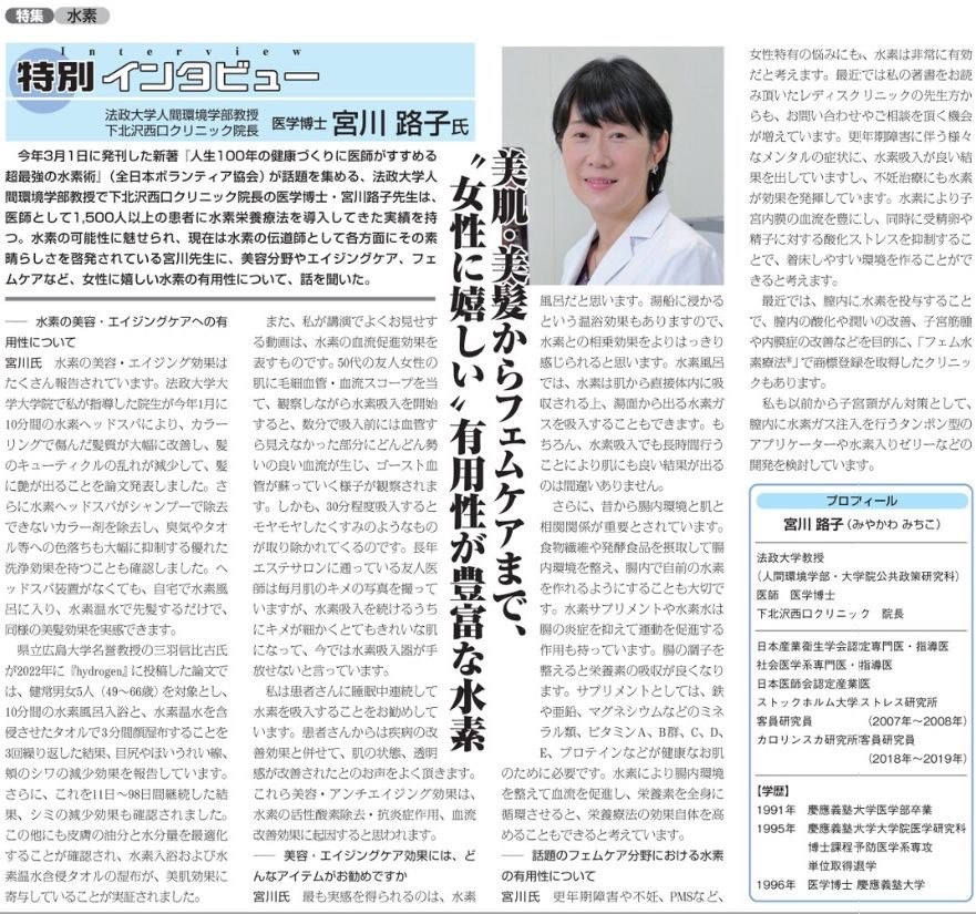 🇯🇵В Японии водород давно рассматривается как часть медицинской профилактики, anti-age-подхода и женского здоровья — а не как модный wellness-тренд. 🎤Это подтверждает специальное интервью с Миякава Митико — доктором медицины, профессором Университета Хосэй и директором клиники Китакандо. В её клинической практике водородная терапия применяется более чем у 1 500 пациентов. Что подтверждено клинически: ▪️ Красота и anti-age В клинических исследованиях Университета Хосэй ежедневное употребление водородной воды способствовало улучшению тона кожи, снижению пигментации, выравниванию текстуры и улучшению состояния волос — уменьшались повреждения кутикулы и усиливался естественный блеск. ▪️ Чувствительная кожа Умывания водородной водой и водородные спа-процедуры снижали окисление кожного сала, уменьшали оксидативный стресс и демонстрировали мягкий очищающий эффект, особенно важный для чувствительной кожи. ▪️ Японские исследования В исследовании Университета префектуры Кагава у женщин 49–66
