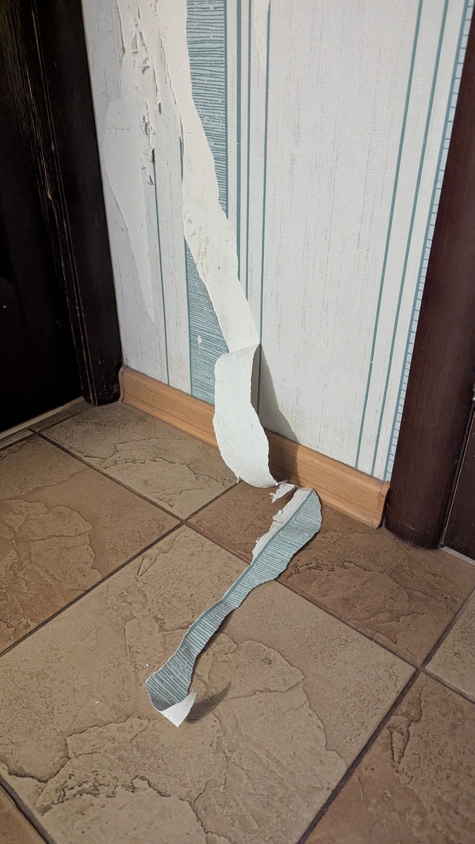 Это Васькины проделки. Ночью решил нам сделать дизайнерский ремонт. Просился к ней в комнату, а она не открывала. Отомстил.