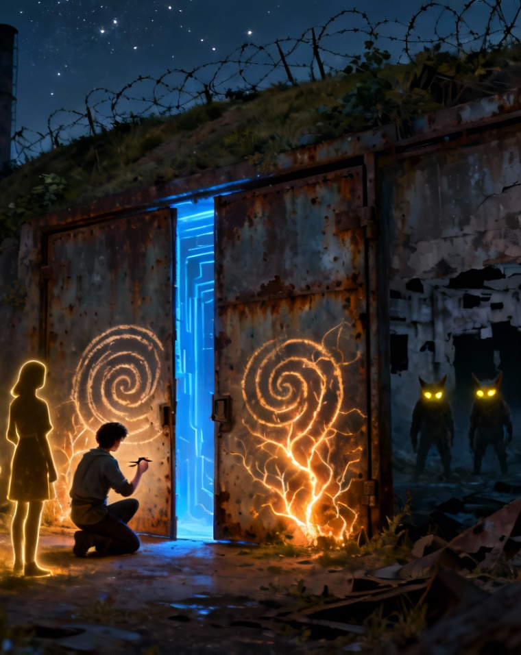 Я достал кусок мела, валявшийся в мусоре. Присел перед массивными дверями. И на ржавой стали начал выводить простые, детские символы. Круг. Волнистую линию. Спираль. Знаки света, воды, роста. Артем направлял на них чистый, успокаивающий тон. Лиза проецировала в них тепло и ощущение безопасности. Максим стабилизировал энергию, делая её текучей, как ручей.