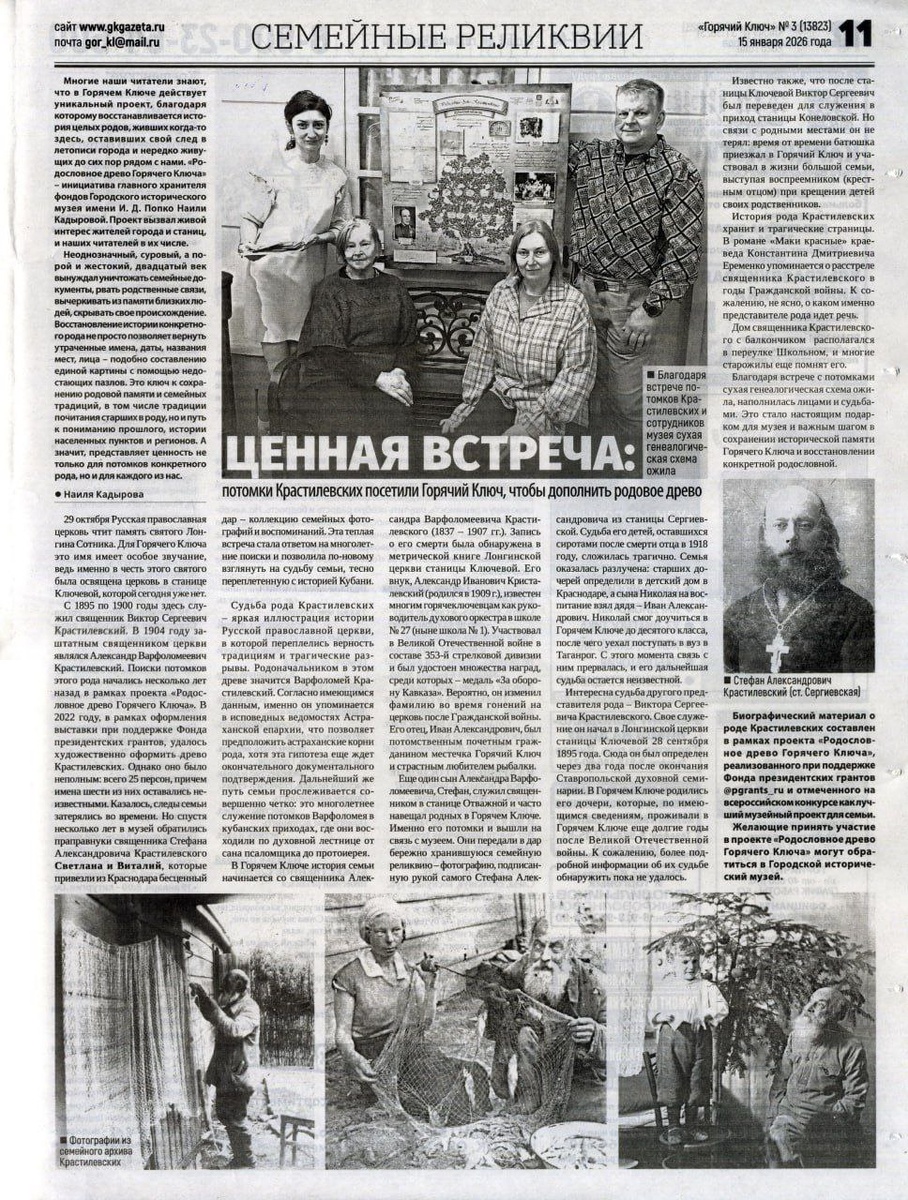 Друзья! Вышла статья в газете "Горячий Ключ" по родословной Крастилевских/Кристалевских