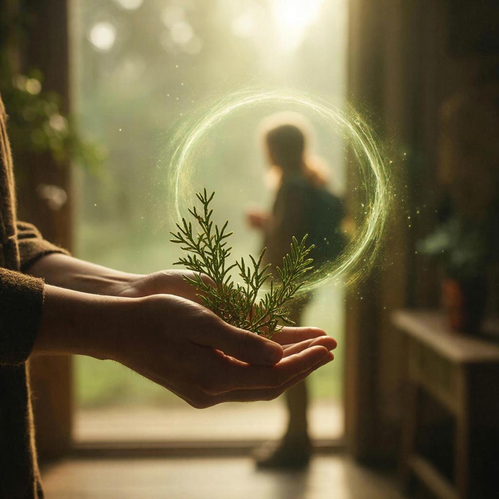 Почему именно он? Можжевельник — это растение-воин, растение-очиститель. Его дымом с древности окуривали дома от болезней и злых духов, а ветки клали под порог и за иконы как самую сильную защиту. Он пахнет лесом, смолой и чем-то бесконечно чистым. Этот запах — и есть его сила. Он пробивает любую энергетическую «грязь», обозначая пространство вокруг человека как священное и неприкосновенное. Давая в дорогу веточку можжевельника, вы буквально говорите: «Пусть твой путь будет ясен, как этот запах, и крепок, как эта хвоя».