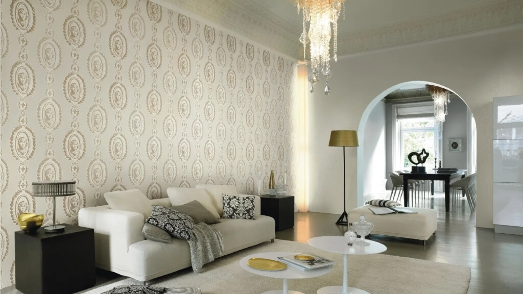 Узор на стенах должен соответствовать масштабу комнаты и мебели. Крупные орнаменты в небольшом помещении создают ощущение тесноты, особенно если рядом находятся массивные шкафы или диваны. В таких случаях лучше выбирать мелкие повторяющиеся мотивы или вовсе отказаться от явного рисунка в пользу текстуры.