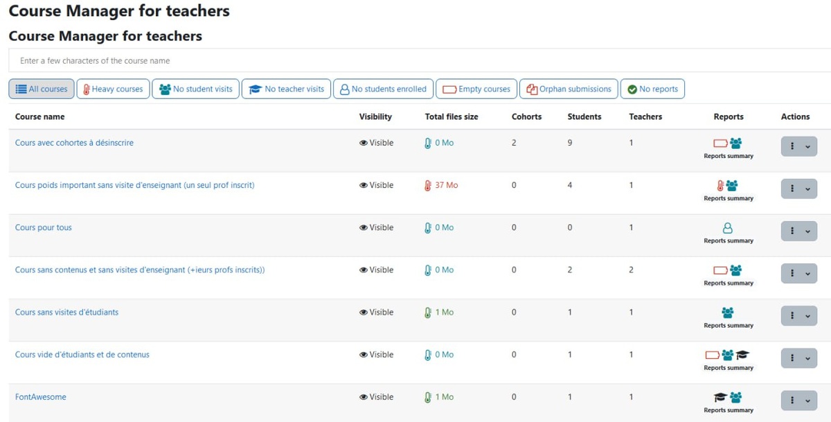 ! 📚 Есть полезный инструмент — Course Manager Report. Зачем он нужен? ✅ Это ваша личная панель управления курсами: видите, что хранится, жив ли курс, и при необходимости — легко чистите. ✅ Есть удобные ярлыки для быстрой уборки и полная статистика по каждому курсу. ✅ Система сама считает отчёты и может показывать прямо в курсе предупреждения о возможных проблемах. ✅ Также есть инструменты для управления курсами без преподавателей и сброса заданий с файлами от студентов, которые уже не учатся. Идеально, чтобы поддерживать порядок в учебных материалах и не перегружать систему. 🧹 Пользуйтесь на здоровье и держите курсы в актуальном состоянии! https://moodle.org/plugins/report_coursemanager