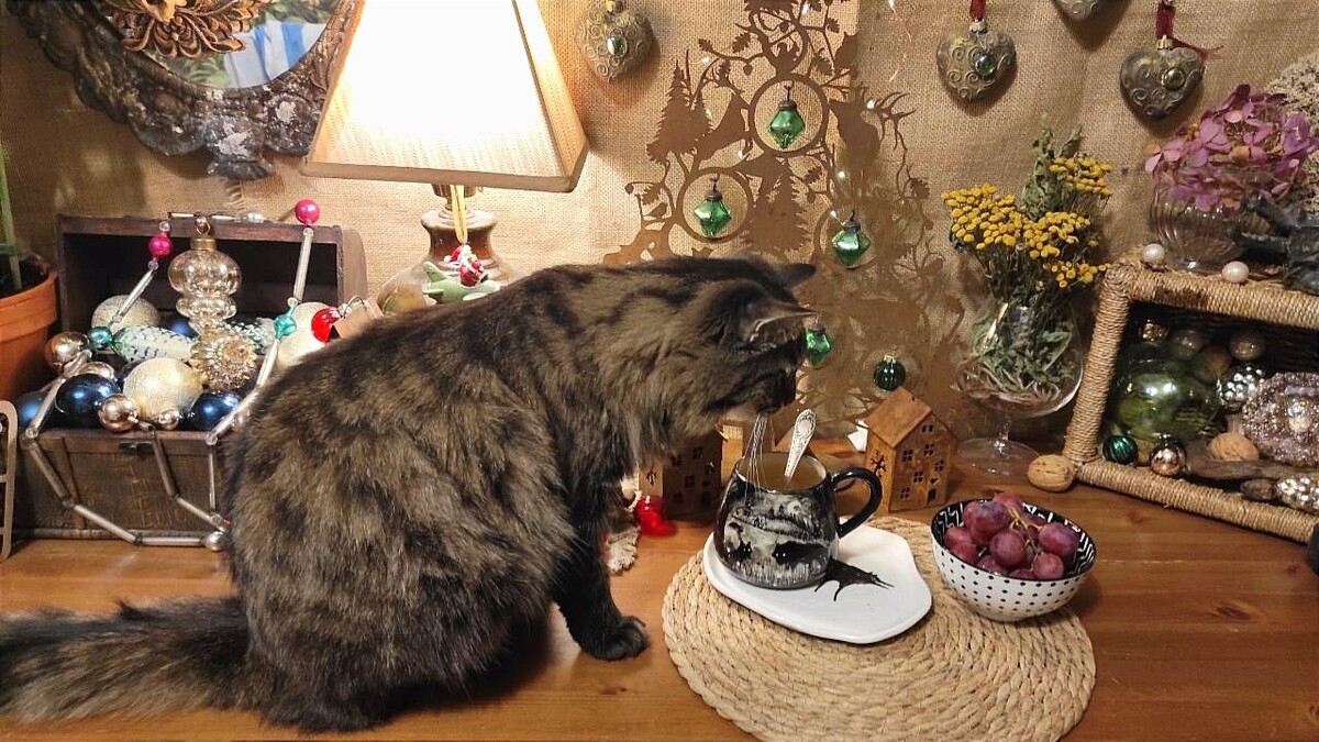 Мама сериал по ТВЦ смотреть не стала, а сходив в ванную, легла читать детективы, а я, заварив Засыпайку, села писать свои Маленькие Хроники. Чуня не смогла устоять перед пленительным запахом валерианы, и пока чай немного остывал, сидела на комоде, вдыхала аромат трав. Нос она теперь, наученная опытом, в чашку не суёт, но я краем глаза контролирую, как-бы Купер не рванул к чашке, и не обжегся.