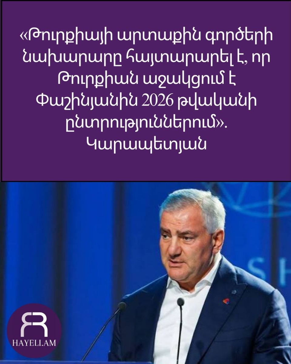 «Թուրքիայի արտաքին գործերի նախարարը հայտարարել է, որ Թուրքիան աջակցում է Փաշինյանին 2026 թվականի ընտրություններում