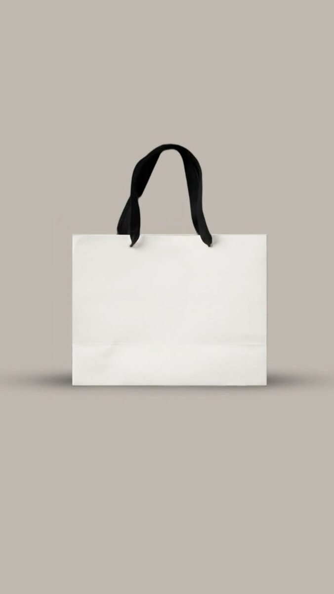«Добавь на этот минималистичный белый бумажный пакет с чёрными ручками изысканный паттерн Toile de Jouy: бордово-розовые розы, птицы, листья и ветви в классическом винтажном стиле. Пусть узор покрывает всю лицевую поверхность пакета, при этом сохраняется современная эстетика, чистота формы и контраст с чёрными ручками.»