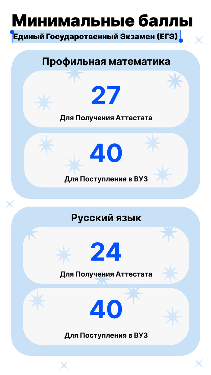 ➡ Профильная математика — 40 баллов ❗ Обратите внимание: это не проходные баллы на конкретные специальности (они будут намного выше), а нижняя граница, подав документы ниже которой, вуз вас просто не имеет права рассматривать. А для получения аттестата? Требования остались на прежнем уровне: