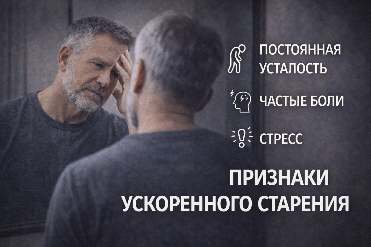 Старение редко начинается с морщин. Гораздо чаще оно проявляется иначе — усталостью, снижением выносливости, ухудшением сна и странным ощущением, что организм «работает не так, как раньше». Большинство людей игнорируют эти сигналы годами, считая их нормой возраста. Но правда в том, что это не норма, а признаки ускоренного биологического старения. И если их вовремя заметить, процесс можно замедлить. Разберёмся, какие сигналы организм подаёт раньше всего — и почему мы привыкли их не замечать. У каждого есть паспортный возраст — и биологический. Биологический возраст отражает: Исследования показывают: у людей одного возраста биологический возраст может отличаться на 10–15 лет. И именно он определяет, как человек себя чувствует и выглядит. Если раньше усталость появлялась после нагрузки, а теперь она присутствует почти всегда — это тревожный сигнал. Почему это связано со старением: Такая усталость не снимается выходными и отпуском. Это один из самых ранних признаков ускоренного старения кл