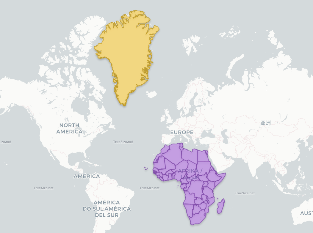 Последние пару недель все только и делают, что говорят о Гренландии. Но мало кто представляет реальные размеры Гренландии. На карте Гренландия выглядит просто огромной, сравнимой по размерам с целыми континентами. Например, кажется, что она размером с Африку. Чуть больше Южной Америки... и сильно больше Австралии. Но на самом деле её огромность — это картографическая иллюзия. И виной всему — привычная нам карта мира. Та карта, что висит в школьных классах или показывается в приложениях, называется проекцией Меркатора. Она была создана в XVI веке для помощи мореплавателям. Её главное достоинство — она сохраняет углы, что критически важно для навигации по компасу. Но за эту точность в направлении приходится платить искажением площадей. Представьте, что вы пытаетесь перенести изображение с кожуры апельсина (нашу круглую Землю) на плоский лист бумаги. В районе экватора всё будет более-менее точно, но чем ближе к полюсам, тем сильнее придётся «растягивать» участки суши. Гренландия как раз