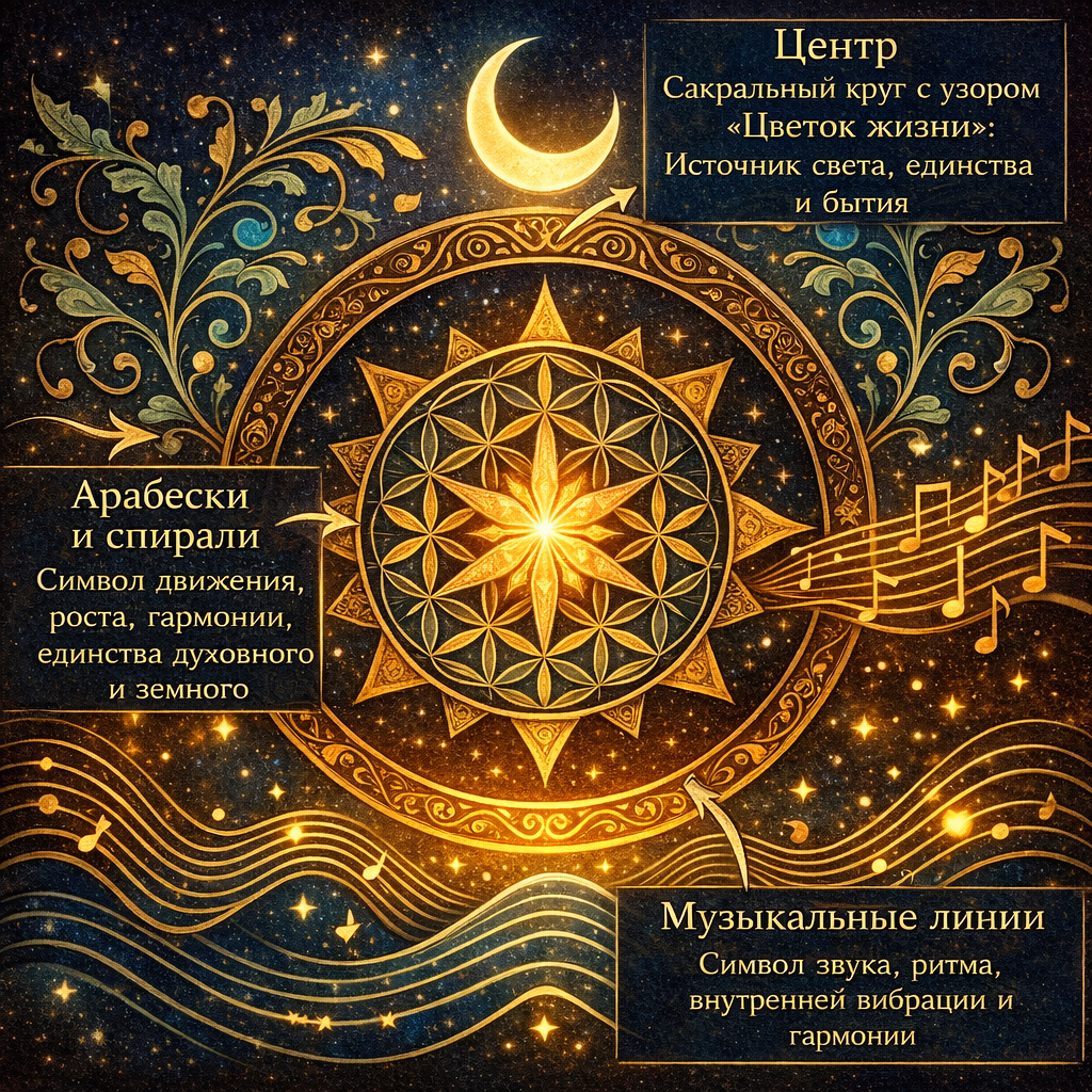 #Суфизм #СакральнаяГеометрия #ЦветокЖизни #МистическийЯзык #ГармонияФорм #ЗвукиВселенной #РитмСозидания #ИбнАраби #Руми #ДуховнаяПрактика #БожественныйСвет #Мистика #Арабески #ДуховноеИскусство #Таджалли #Символика #Созерцание #ЭнергияФорм #МузыкаВселенной #внеизмерений