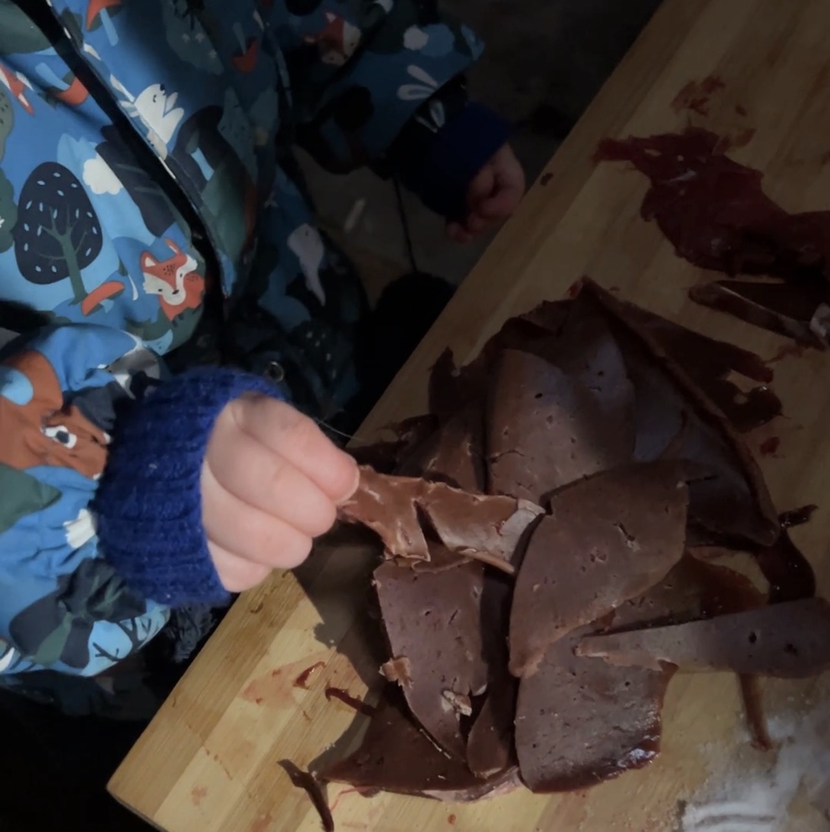 В жизни каждого маленького коми-ижемца есть моменты «инициации». Это не обязательно сложные обряды — иногда это просто первый глоток ледяного воздуха в тундре или первый кусочек настоящей еды предков. На днях у нашего младшего, того самого «ванного» богатыря, случился важный гастрономический дебют. Он впервые попробовал строганину.