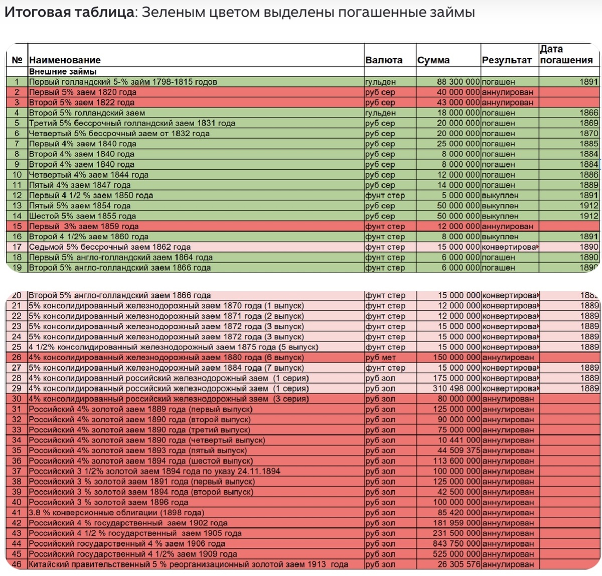 Frankmedia со ссылкой на РБК сообщило, что некий Американский инвестфонд Noble Capital RSD** подал иск в федеральный суд США к Российской Федерации, Минфину, Банку России и Фонду национального благосостояния, требуя $225 млрд по обязательствам по облигациям Российской империи 1916 года…В Noble Capital RSD утверждают, что являются законным владельцем облигаций Российской империи на $25 млн с купоном 5,5%, размещенных через National City Bank of New York. Незнакомому с историей вокруг долгов Российской империи ситуация может показаться правдоподобной. Я же пару лет назад детально ее изучал и даже написал серию статьей: И поэтому мне сразу резанули главная нестыковка: Начнем с того, что за столетие иностранных займов Российская империя никогда не занимала не только в долларах США, но даже в американских банках. Займы проходили через: банки Последний заем в чисто иностранной валюте, фунтах стерлингов, был выпущен в 1884 году. Впоследствии, с принятием золотого стандарта, займы номиниров