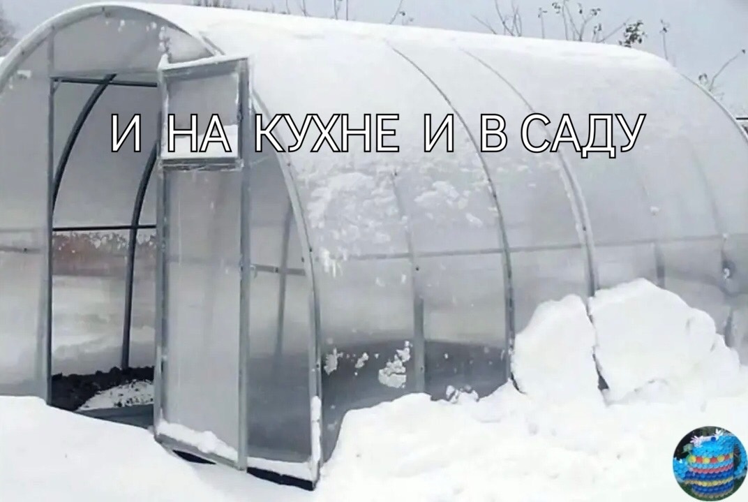 Речь пойдёт о теплице. Вы спрашивали,✍️ я отвечаю. Нужно ли забрасывать снег в теплицу? 🤔 Сколько людей - столько и мнений. Мы забрасываем снег, но не сразу до упора, а понемногу, на протяжении всей зимы.