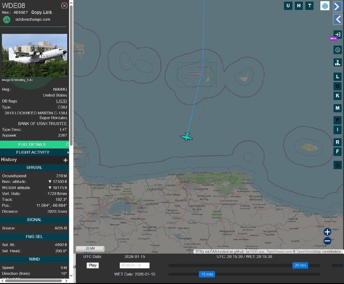 За последние несколько часов в Каракасе совершили посадку три борта: ▪️ LM-100J Super Hercules компании Pallas Aviation, аффилированной с ЦРУ. Ранее борт прилетал в столицу Венесуэлы 10 января. ▪️Dassault Falcon 2000 компании Erebus LLC. ▪️DHC-8-300 Dash 8-300, принадлежащий Госдепартаменту США (с промежуточной остановкой в Кюрасао). Борт с делегацией ведомства уже прилетал в Каракас 9 января. Вероятно, активные полёты авиации, связанной с американским правительством осуществляются в рамках подготовки к возобновлению работы посольства США в Венесуэле. #Венесуэла Военный Осведомитель