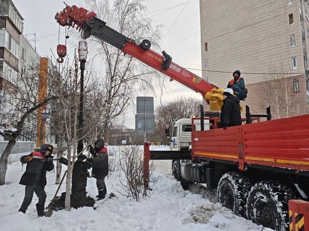 На улице Артема установили демонтированную ранее световую опору