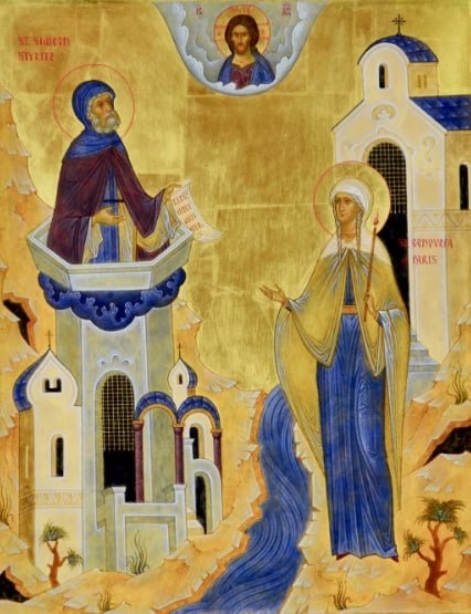 Святая Геновефа, или по-французски Женевьева, родилась в 422 году в городке Нантер близ Лютеции в обеспеченной семье офицера римской армии в отставке. Девочка воспитывалась в христианской вере и уже в семь лет решила посвятить себя Богу. Просвещенный Духом епископ Осерский Герман заметил Божию избранницу и благословил на избранный ею путь. В 15 лет Женевьева дала обет безбрачия и, отличаясь поразительным воздержанием, вела скромную благочестивую жизнь, живя с родителями. После их преставления она переехала к своей крестной в соседний небольшой городок Лютецию, будущий Париж. Там она самоотверженно помогала всем нуждающимся, потратив свое наследство на дела милосердия. Она обладала дарами исцеления и прозорливости и весьма почиталась и простым народом и при королевском дворе за творимую Господом через нее помощь. В 451 году на Париж двигалась армия завоевателей-гуннов под предводительством Атиллы. Народ начал спасаться бегством, но Женевьева призвала всех остаться и молиться. Ее послу