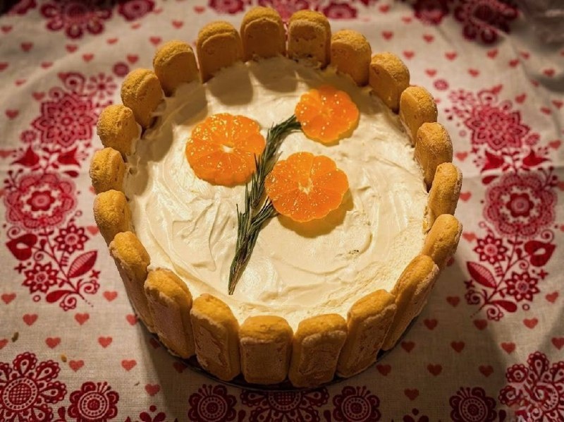 Tire mi su - подними меня вверх. Так переводится название с итальянского языка. Торт за 30 минут! Никаких духовок, только блендер, миксер и «холодная сборка». Форма 20 см диаметром. Ингредиенты: 1️⃣ Сливки 33% - 500 мл 2️⃣ Сыр маскарпоне или крем чиз (65% и выше) - 300 гр 3️⃣ Сахарная пудра - 150 гр 4️⃣ Ваниль 5️⃣ Мандарины - 6-7 шт 6️⃣ Печенье Савоярди - 600 грамм Приготовление: 1. Очистите мандарины от кожуры и перебейте блендером до однородного пюре. Если очень кисло - отрегулируйте сахаром 2. Сливки охладите и взбейте с сахарной пудрой до пиков 3. Творожный сыр (крем чиз или маскарпоне) взбейте миксером, затем положите туда треть взбитых сливок и ваниль. Перемешайте миксером до однородности. 4. Добавьте оставшиеся взбитые сливки и аккуратно перемешайте ложкой. Движения снизу вверх, по кругу миски. Получится воздушный крем 5. Собираем торт. На дно разборной формы нанесите немного крема. В самом углу бортик/дно. И немного, по бортику, на высоте 3 см. К этому крему приклеим печень