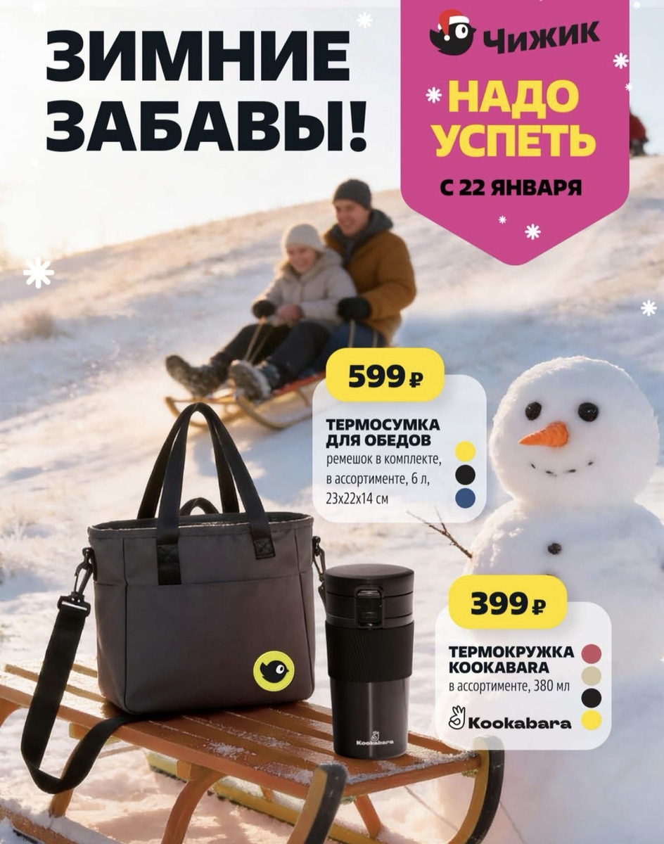 Самое время для зимних забав! И надо успеть в Чижик с 22 января! Вышел новый Каталог и давайте посмотрим, что привезут полезного и нужного нам! Удобная Термокружка - она сохранит горячим напиток и пригодится, чтобы не замерзнуть, катаясь на санках с гор! С собой можно прихватить и Термосумку, которая сохранит Ваш обед для перекуса на чистом воздухе! ** Впервые привезут в Чижик Конфетки вафельные без сахара для тех, кто следит за своим здоровьем! ** Хлебцы зерновые оценят те, кто любит перекусы в течение дня. ** Напитки негазированные с Манго или с Алое Вера - на Ваш выбор. ** Печень трески - пригодится для вкусного салата ** Колечки луковые в сметанном соусе на любителей. ** Новый десерт к чаю - бисквитное Пирожное с кремом какао! Что Вам больше всего приглянулось и захотелось попробовать? Интересно будет узнать Ваше мнение, поделитесь в комментариях! Десертов много привезут самых разных, каждый отлично подойдет к Чаю с лимоном в треугольничках: ** Брауни Сдобная особа Соленая карамел
