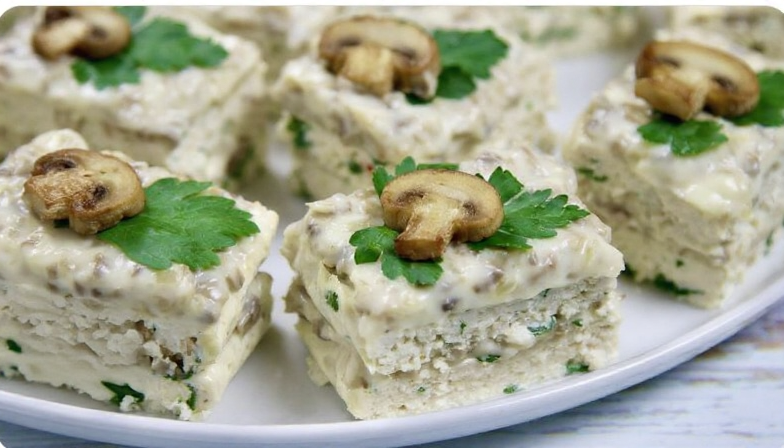 Иногда хочется приготовить что-то такое, что удивит и обрадует не только вкусом, но и видом. Не пирожное в сладком смысле, а именно закуску — красивую, аккуратную, которую не стыдно поставить в центр стола. Для меня таким открытием стали куриные «пирожные» с грибным кремом. Звучит необычно, но когда пробуешь, всё встаёт на свои места: это очень нежная, сытная и по-праздничному изящная закуска. Идея в том, чтобы приготовить из куриного фарша тонкий, мягкий корж, а затем собрать его с грибным кремом, как торт. Получается и красиво, и очень вкусно. Для этого рецепта мне понадобилось совсем не много, всё самое обычное: Для куриной основы: Для грибного крема и украшения: С чего я начала?