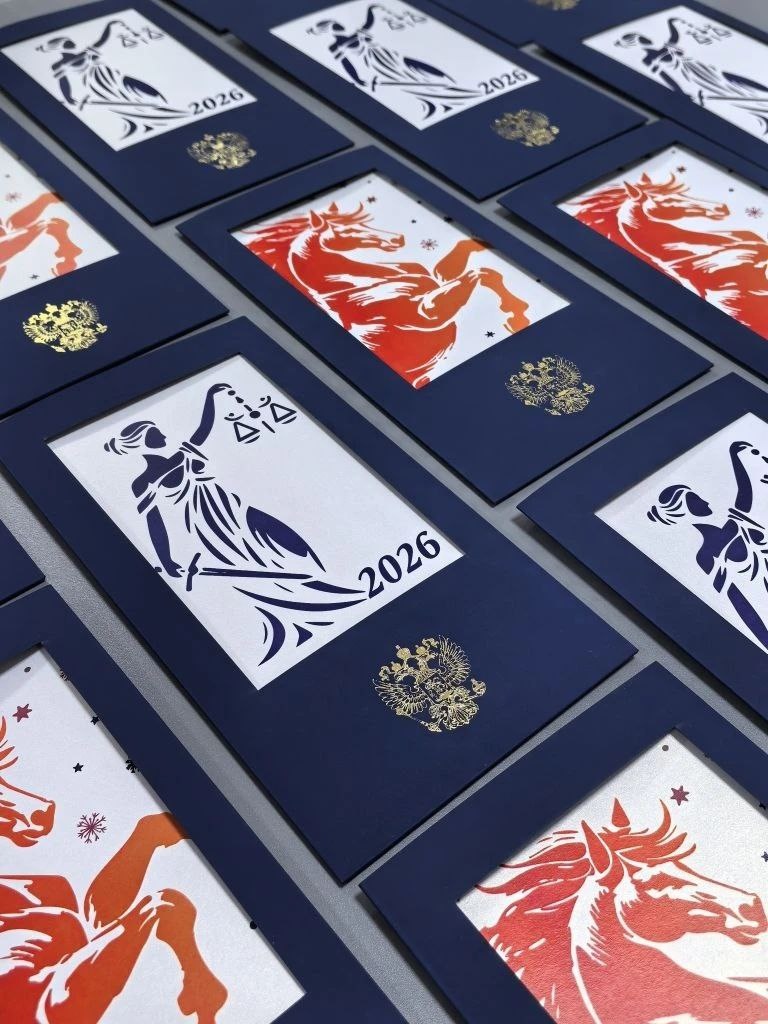 дублирую: Новогодняя магия в конверте: а вы нашли главный секрет? 🤔 Эта открытка маленький спектакль из двух действий. Действие первое: вы видите праздничное поздравление в «окошке» конверта из темно-синего софт-тача с тиснением. Действие второе (и главное): достаёте открытку-вкладыш и перед вами возникает символ наступающего года, Огненный Конь, сияющий перламутровым золотом. В чём секрет? В идеальном расчёте и любви к деталям. Конверт не имеет клапана, что создаёт чистый, современный силуэт. Тёмный, тактильный софт-тач снаружи контрастирует с внутренним сиянием перламутровой бумаги. Цифровая печать обеспечивает чёткость, а тиснение добавляет ту самую «дорогую» глубину, которую можно почувствовать пальцами. Такая открытка это больше, чем просто поздравление. Это маленький ритуал, диалог между дарителем и получателем, повод на мгновение остановиться и удивиться. Она создана не для того, чтобы её быстро прочли и отложили, а чтобы её разгадывали, рассматривали и хранили. А вы уж