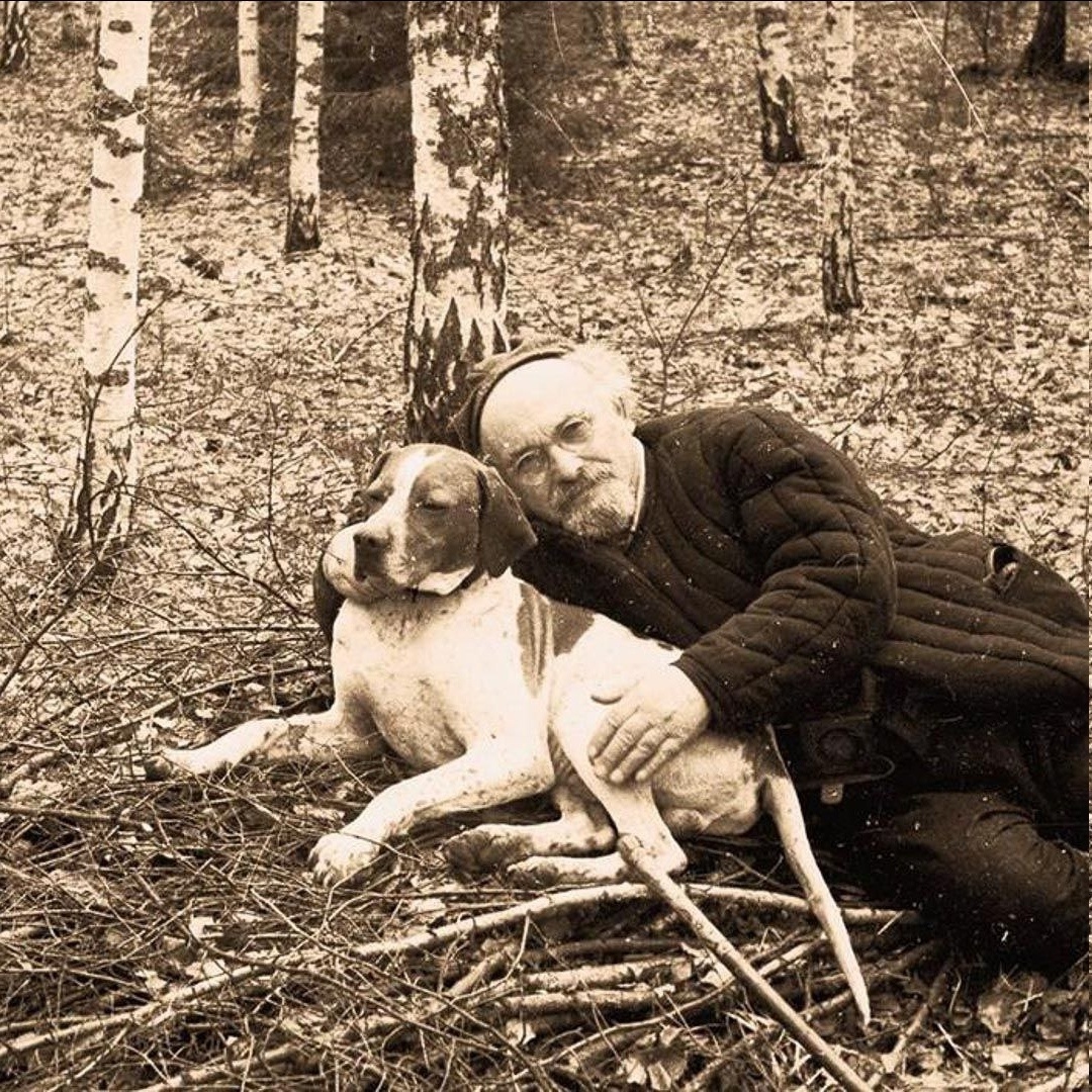 Привычное одиночество скрашивают две охотничьи собаки. «Вот желанная квартира, а жить не с кем… Один я. Прожил свою долгую брачную жизнь «полумонахом»…»