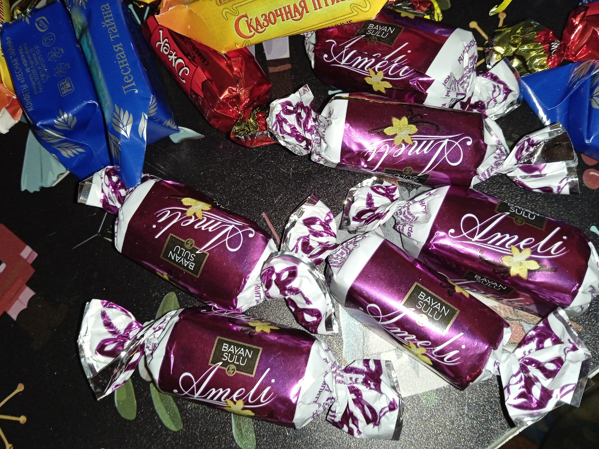 Всем привет! Праздники закончились, а сладости продолжаются. 😊 А всё благодаря посылке, которую мы получили к Новому году от бабушки из Кургана. 🤗 Конечно, сейчас в магазинах доступны любые лакомства, но это наша семейная традиция: когда мы с братом были маленькими, наша бабушка также присылала на праздники коробки с конфетами из далёкого Южно-Сахалинска. Между нашими городами - около двух тысяч километров, поэтому не все конфеты, распространённые в Зауралье, можно найти у нас в ЮФО (например, производства Челябинска или Екатеринбурга - у нас на прилавках, в основном, десерты из Краснодара, хотя есть и свои, волгоградские, "конфиловские"). Поэтому пробуем и делимся впечатлениями! 1. Конфеты Bayan Sulu "Ameli". Глазированные пралиновые конфеты из Казахстана. Пралине неплохое, но глазурь немного "пластилиновая" у них. 2. Конфеты Bayan Sulu "Красный". Название и оформление не случайны - конфеты действительно напоминают "Красный мак" и другие вариации на эту тему, пралине с карамельной к