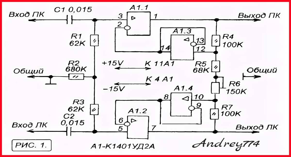 Центральным элементом схемы является суммарно - разностный преобразователь (A1.1 + A1.2), выполняющий следующие функции: