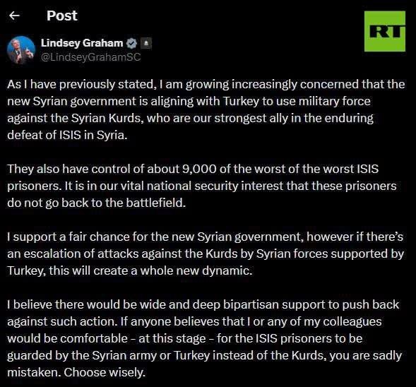 Lindsey Graham WARNS new Syrian govt from VIOLENCE toward Syrian Kurds — 'our strongest ally in defeat of ISIS in Syria'