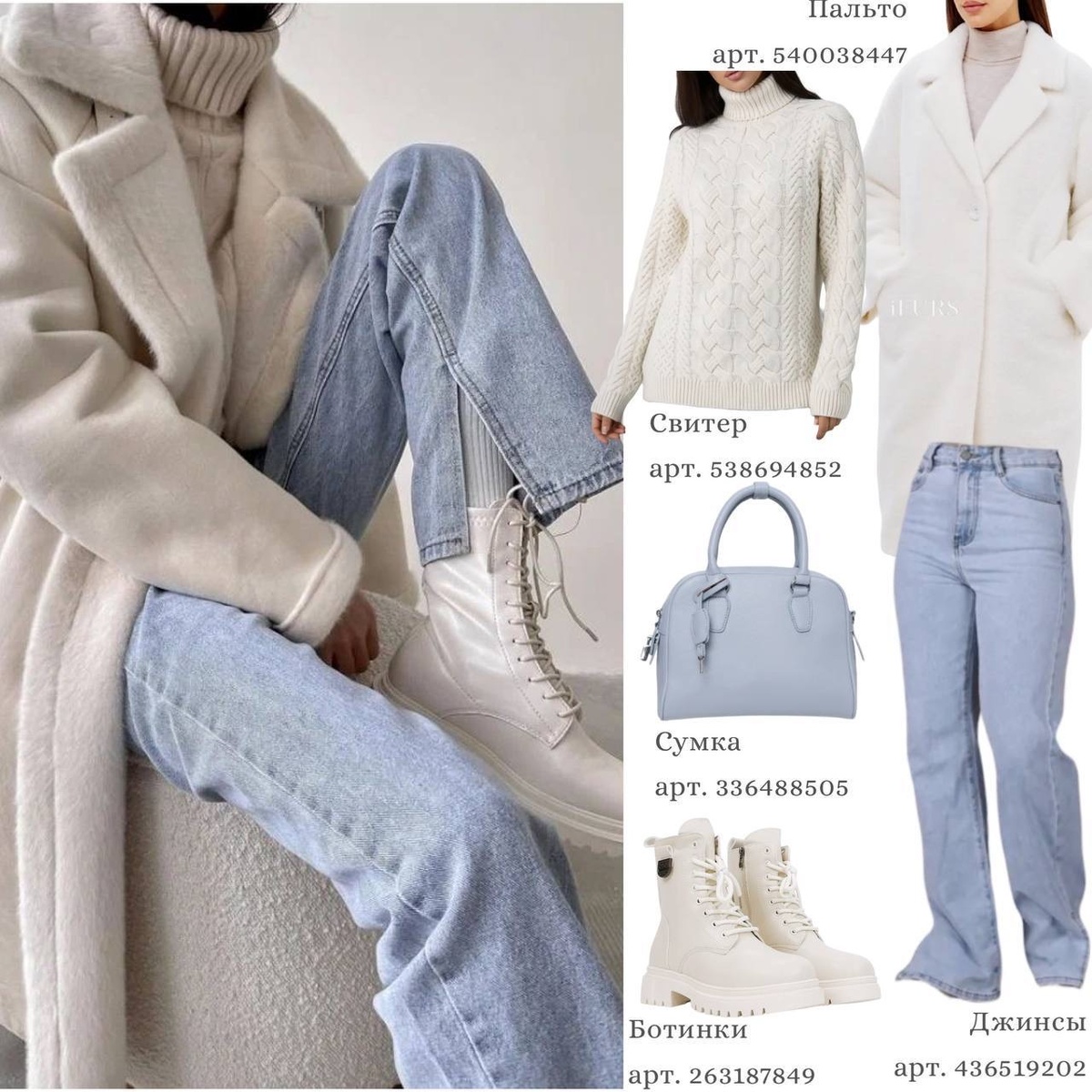 Зима — не повод отказываться от джинсов. Напротив, в холодный сезон они становятся одной из самых универсальных вещей гардероба: практичные, удобные и легко сочетаемые с любыми теплыми слоями. Секрет удачного зимнего образа — в деталях: фактурах, правильных пропорциях, обуви и аксессуарах. Ниже — пять продуманных зимних образов с джинсами с WB, которые выглядят актуально, уютно и «дорого», даже если собраны из базовых вещей. Перейти прямо к данному посту в Telegram с активными ссылками на вещи Светлые или голубые джинсы в зимнем гардеробе смотрятся особенно эффектно, если дополнить их мягким вязаным свитером молочного или кремового оттенка. Такой верх добавляет образу уюта и визуальной «теплоты». Завершает комплект светлое пальто прямого или слегка свободного кроя — оно делает образ более собранным и элегантным. Грубые ботинки на массивной подошве добавляют современный акцент, а компактная сумка поддерживает минималистичное настроение. Совет: выбирайте джинсы из плотного денима без си