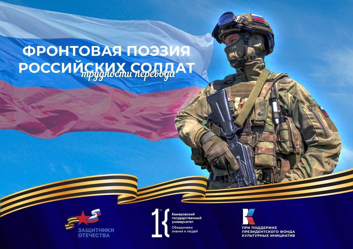 Кемеровский государственный университет совместно с Кемеровским филиалом Государственного фонда «Защитники Отечества» приступает к реализации проекта «Фронтовая поэзия российских солдат: трудности перевода», получившего грантовую поддержку Президентского фонда культурных инициатив в размере более 400 тысяч рублей. Проект направлен на знакомство с творчеством участников специальной военной операции через перевод их стихов на английский язык, издание иллюстрированного сборника и организацию серии культурных мероприятий. Его ключевая задача – не только лингвистический, но и культурный перевод, позволяющий донести до международной аудитории глубину и искренность поэзии российских воинов. Для перевода использовались произведения из книги «Честь наивысшая – носить русский мундир! Истории участников СВО» (составители – Захар Прилепин, Олег Демидов, Алексей Колобродов). Перевод выполняется волонтёрами – студентами Института филологии, иностранных языков и медиакоммуникаций КемГУ в рамках проек