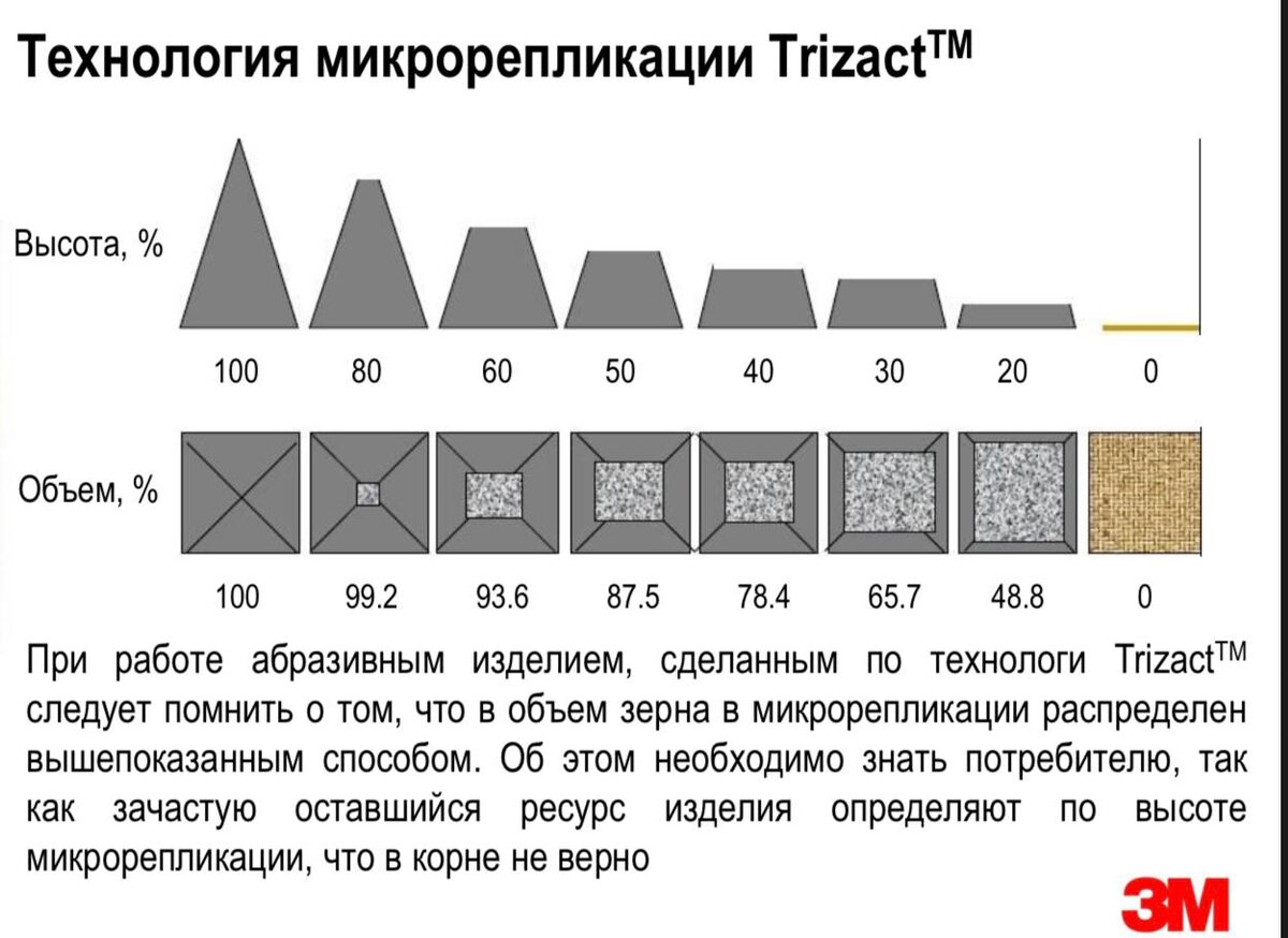 Trizact - это запатентованная технология компании 3M для создания инновационных абразивных материалов (кругов, лент) с