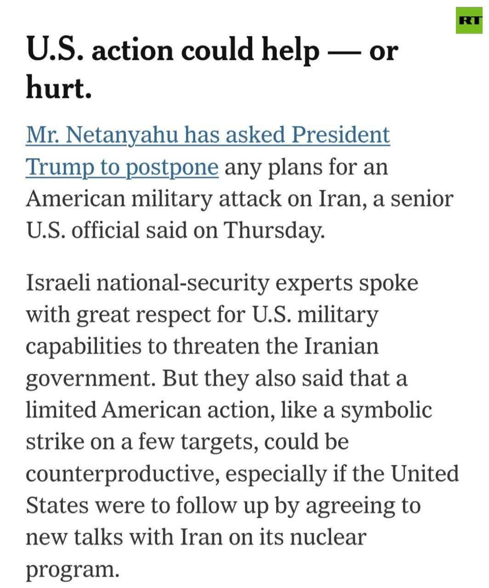 NYT: Netanyahu asked Trump to POSTPONE Iran attack