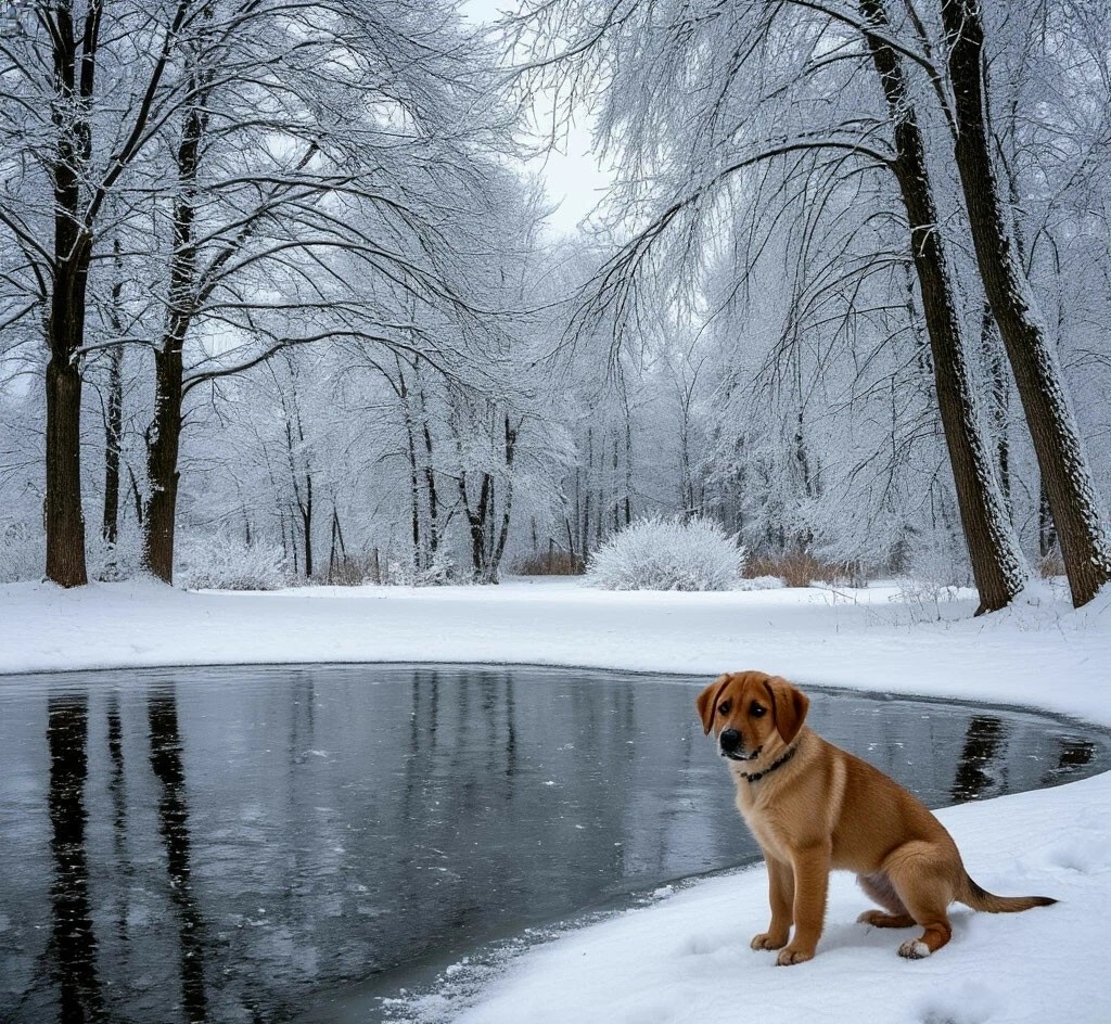 Когда девочка проходила мимо речушки, увидела на тонком льду маленького щенка. Чей это щенок, она не знала, но он подошёл к самой воде. Наверное, ему было очень интересно узнать, что там дальше, потому что он подошёл так близко, что Оля испугалась. Она хотела крикнуть, но не успела: щенок уже был в воде. На раздумия времени не было. Оленька сразу же ступила на хрупкий лёд, который сразу же под ней проломался. Она оказалась в воде, но продолжала путь. В тот момент ей не было холодно. Наоборот, казалось, что внутри всё горит пламенем, а в висках как-будто звучал чей-то голос: надо идти быстрее, чтобы спасти щенка.
