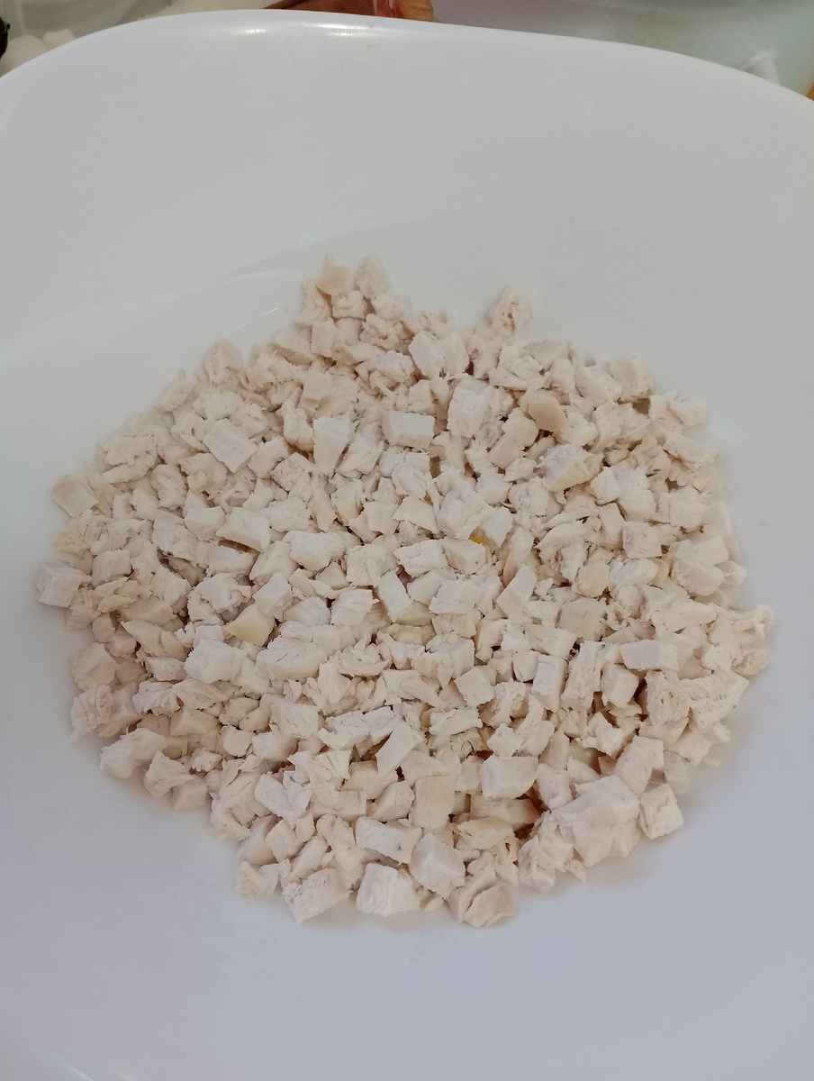 Посолить. Майонез смешать с чесноком ,так будет необычное сочетание вкусов.и маленько смешаем с курицей.