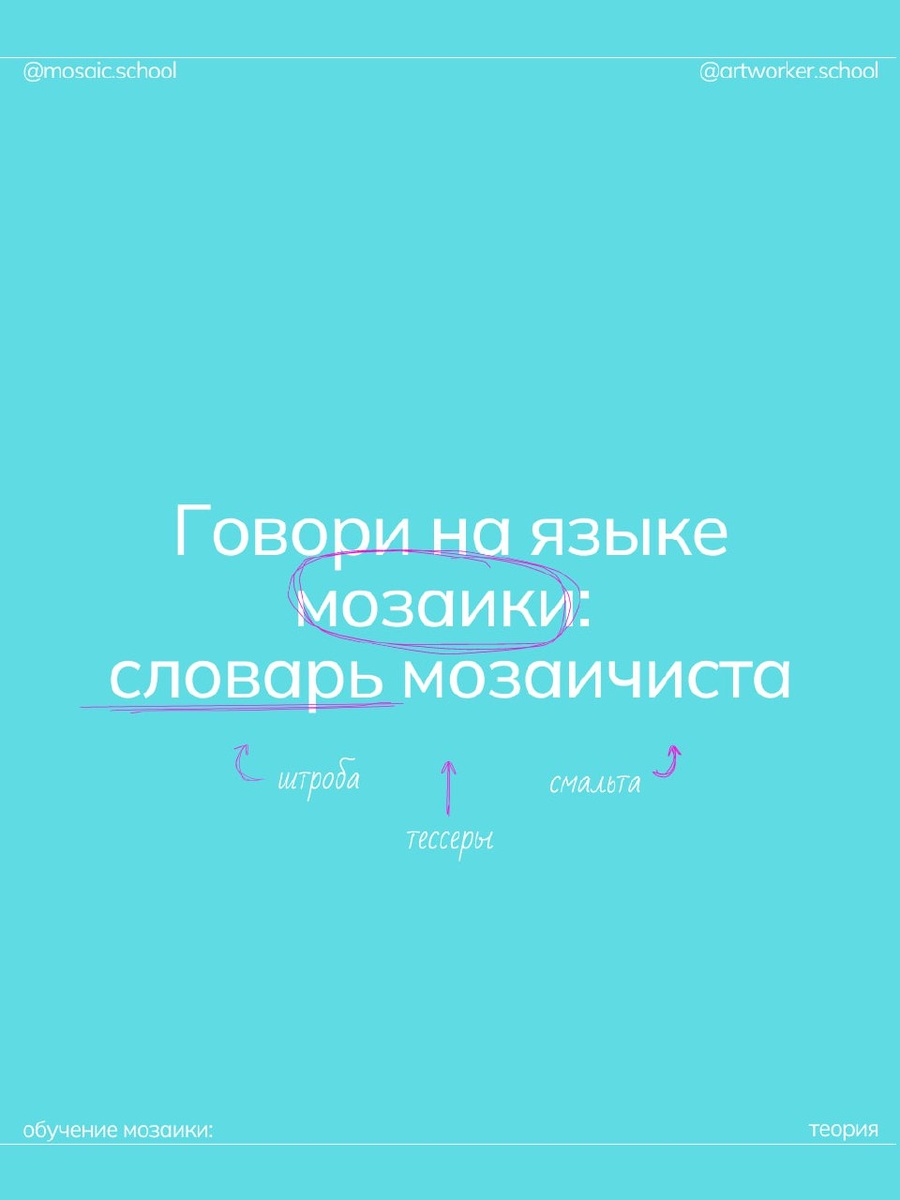 📝 Друзья, всем приятного пятничного настроения🧡 Знакомы ли вы со всеми словами, которые используют профессиональнее мозаичисты? Сегодня делимся с вами немножко образовательной информацией и частичкой профессиональной кухни ArtWorker. Хотите увидеть всё это вживую? ⚡В нашем магазине artworker.shop на Бутырской вы можете: — Прикоснуться к травертину и сравнить его с мрамором — Увидеть, как работает смальтокол и как профессионалы накалывают смальту — Задать все вопросы нашим специалистам по материалам и инструментам 🔍Хотите погрузиться глубже? — Узнайте, как рождается смальта на нашей Смальтоварне в статье — Или посмотрите видео-лекцию, где Сергей, генеральный директор, рассказывает о производстве смальты — Освойте искусство рисования картона в нашей Школе мозаики на Бутырской — Или пройдите онлайн-курс из любого города Настоящий мозаичист не просто укладывает тессеры — он создаёт свою историю, понимая процесс. 📌 Сохраняйте пост — это ваш мини-словарь мозаичного искусства!