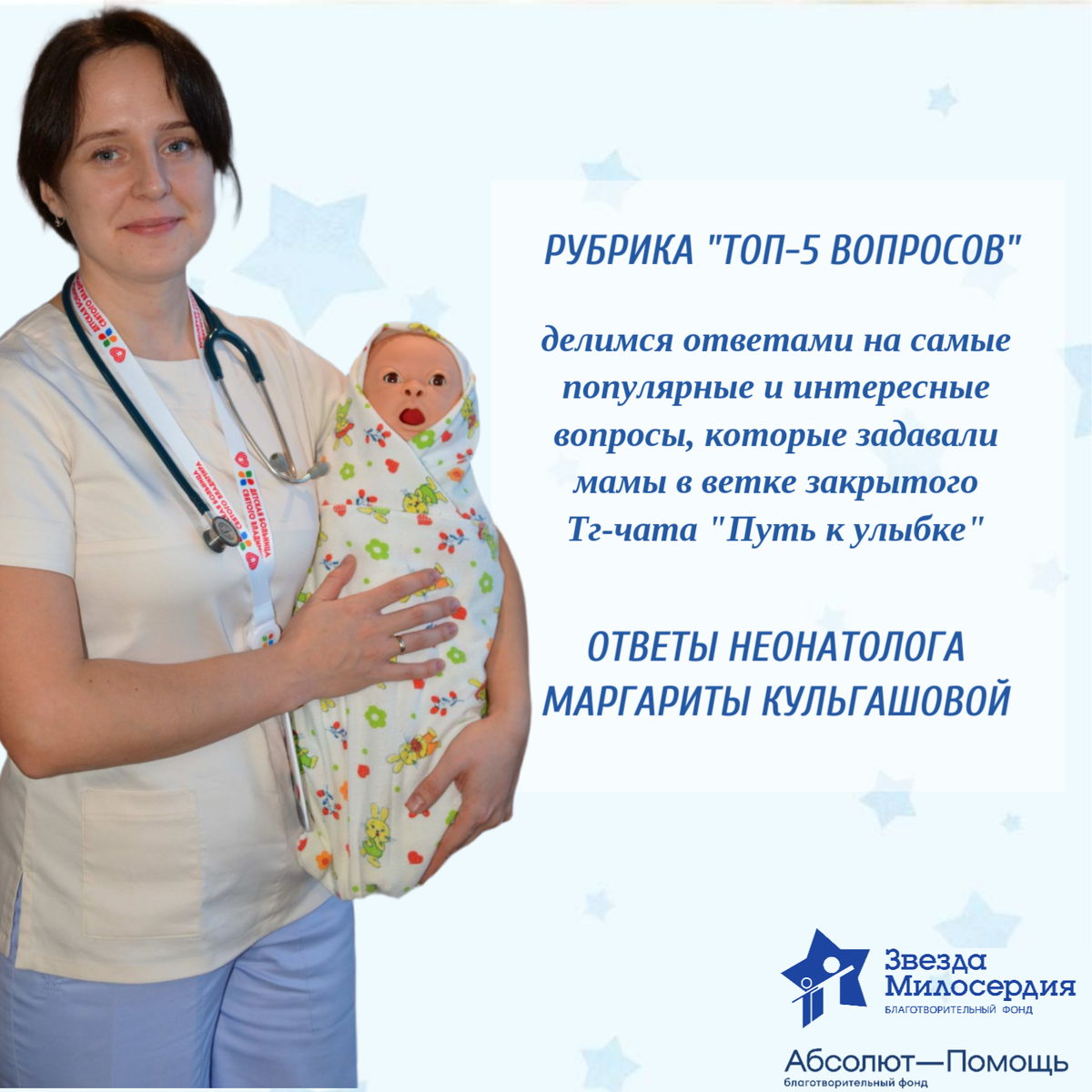 Мы уже рассказывали, что в Телеграм есть закрытый чат для родителей "Путь к улыбке". Нас часто спрашивают как в него попасть - инструкция довольно простая: 1) Зарегистрируйтесь на портале "Путь к улыбке", 2) Подтвердите свою электронную почту, указанную при регистрации, 3) Подайте заявку на вступление в чат. Сегодня мы хотим поделиться ответами из ветки неонатолога, на самые популярные темы. Ловите в карточках ТОП-5 вопросов к неонатологу Маргарите Кульгашовой. Отметим, что этот материал мы подготовили с использованием пожертвования Благотворительного фонда "Абсолют помощь". #ЗвездаМилосердия