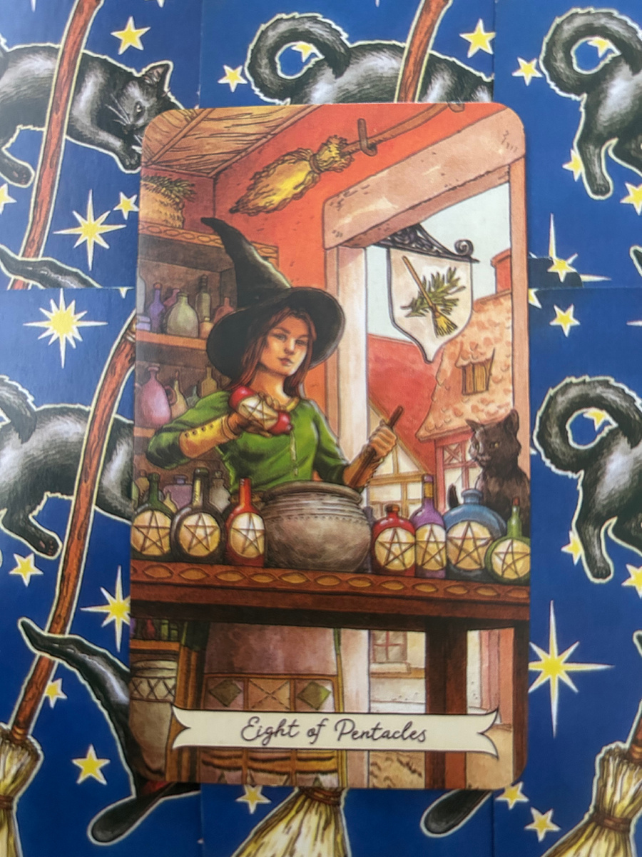 Восьмёрка Пентаклей — это аркан концентрации. Того самого состояния, когда весь мир выключается, а ты остаёшься один на один с делом, которое хочешь сделать качественно. Это не про вдохновение. И не про гениальность. Это про навык, труд и уважение к процессу. На карте (в классике) человек сосредоточенно вытачивает пентакли — один за другим. Он не спешит.Не прыгает с задачи на задачу. Он делает своё дело, и делает его хорошо. Эта энергия: — мастерства — ремесла — внимания к деталям — уважения к работе — профессионального роста Это момент, когда ты становишься лучше не словами, а действиями. Когда: — нужно сфокусироваться — требуется довести дело до ума — важно качество, а не скорость — вы входите в период обучения или прокачки навыков — жизнь призывает к дисциплине Это аркан не про магию, а про «делай, и будет». — Учёба, повышение квалификации, освоение нового навыка. — Работа, где требуется аккуратность и внимание. — Проект, который требует «не блеснуть, а сделать хорошо». — Состояни