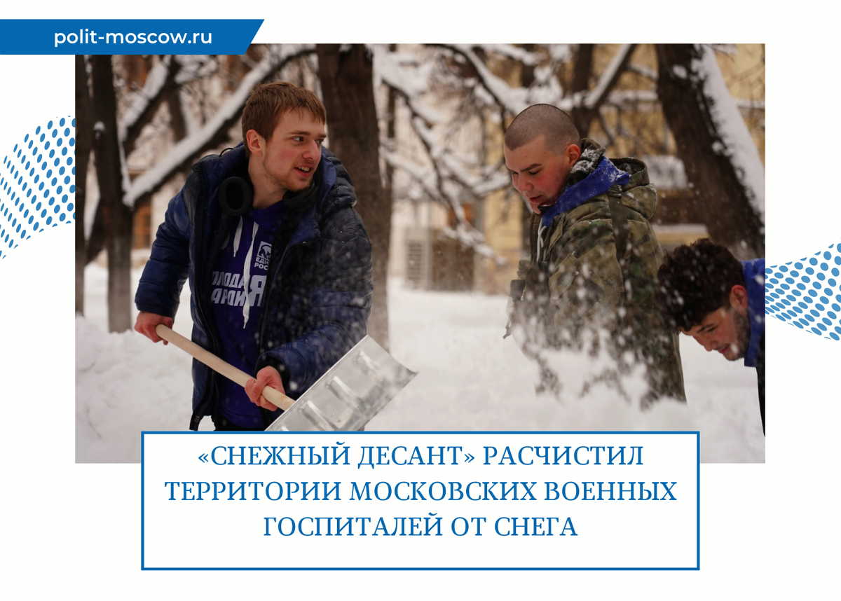 В Москве активисты «Единой России», «Молодой Гвардии» и «Волонтёрской Роты» убрали снег на территории Главного военного клинического госпиталя имени Н. Н. Бурденко, Госпиталя для ветеранов войн № 2, Госпиталя для ветеранов войн № 3, Московского Дома Солдатского Сердца, а также детских садов, школ, парков и других общественных пространств. Акция проходит с 15 по 17 января.
