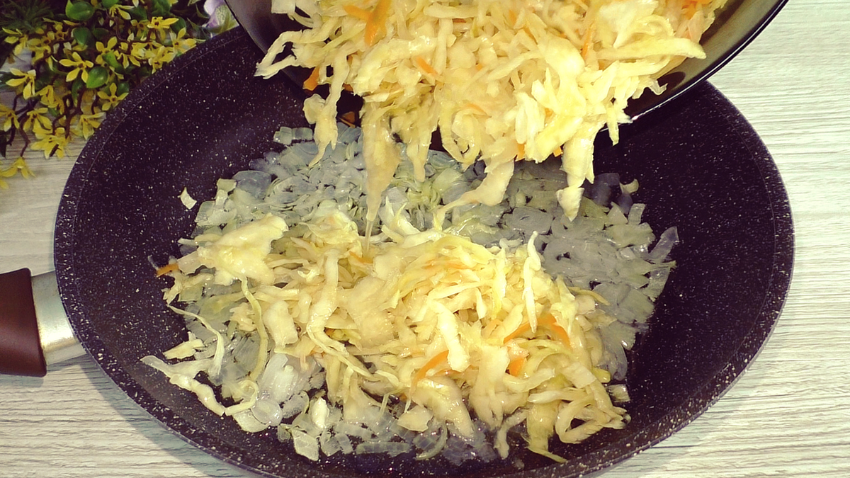 Тушу капусту с луком на среднем огне, под закрытой крышкой, минут 20.