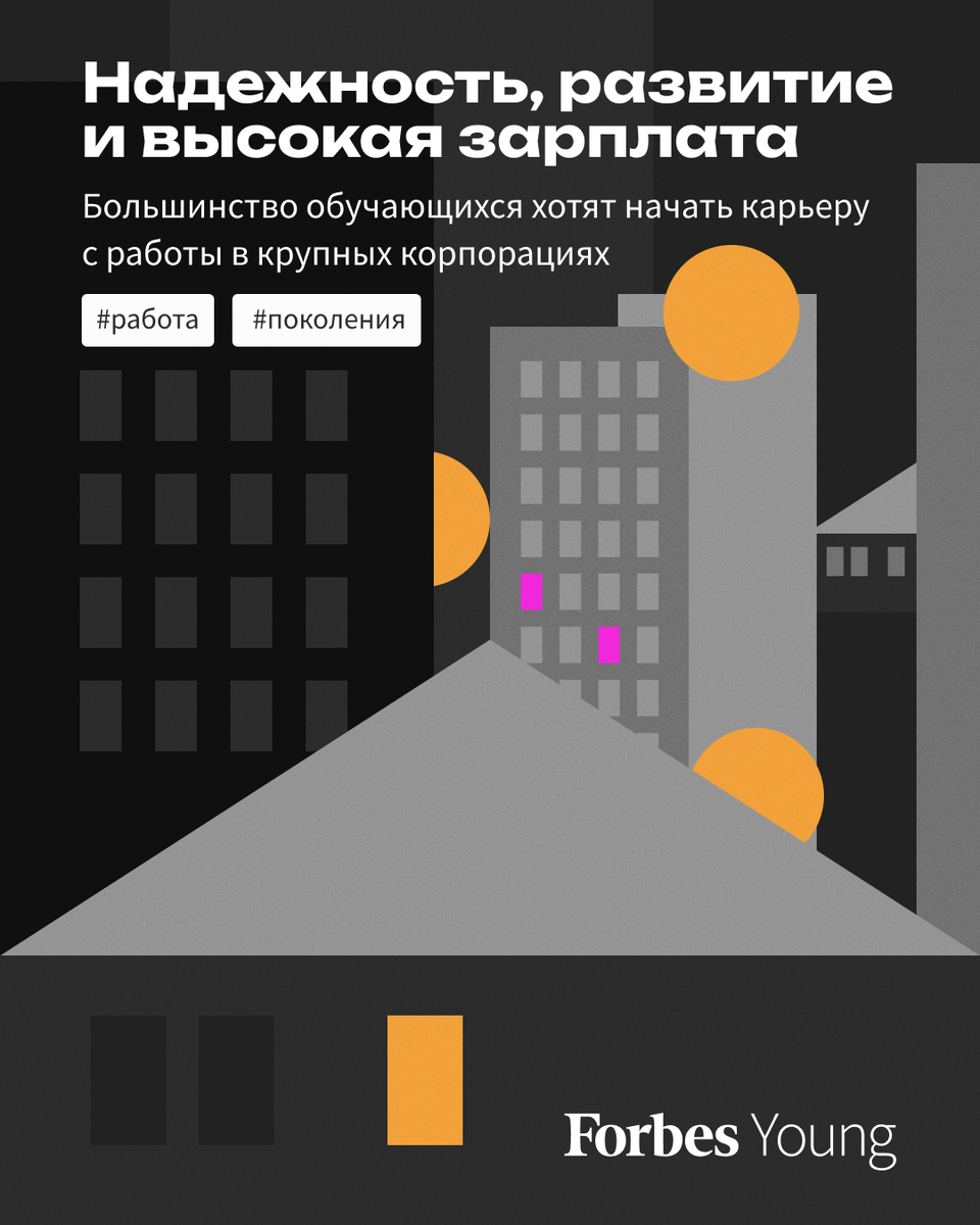 По данным исследования, многие молодые люди считают работу в корпорации перспективной, стабильной и надежной. На втором месте