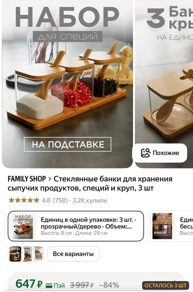 😪🫨😦Стеклянные банки для хранения сыпучих продуктов, специй и круп, 3 шт