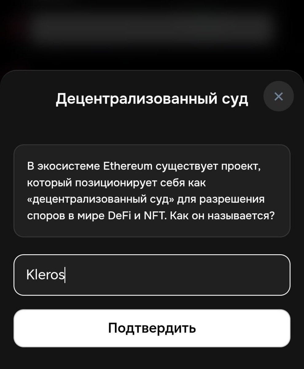 " Kleros Как вступить в команду: 👉 Вход в DAEX: https://t.me/TheDAEXBot Ответы на задания для новичков: 1. Blockstream Satellite 2. Bitcoin core 0.8.0 3. Майнинг 👉 Моя команда: ZSDF15 Зайдите на вкладку команды, там введите в поиске этот код и найдете мою команду. Подробный пост о проекте ТУТ. На кону 300 $TON